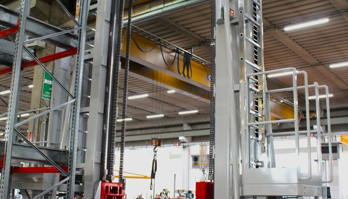 ILIFT è una macchina ad azionamento elettrico, concepita e realizzata per la movimentazione di una navetta ISAT con UDC da e verso una scaffalatura metallica multi-profondità, adibita per lo stoccaggio intensivo e appositamente realizzata.