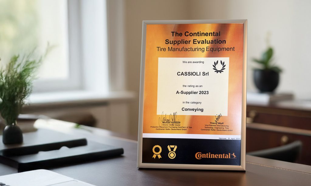 Cassioli è stata premiata da Continental come “A-Supplier 2023” nella categoria “Conveying”. Questo riconoscimento è un ulteriore traguardo che conferma la professionalità di Cassioli come partner di una delle più grandi aziende a livello internazionale nel settore del Tire.