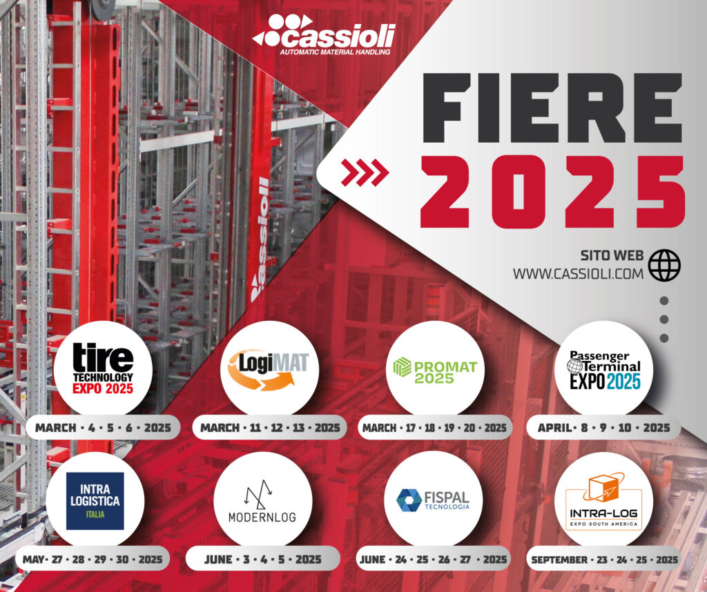 Nel 2025, Cassioli sarà protagonista di alcuni tra i più rilevanti eventi internazionali nei settori dell’intralogistica e dell’automazione industriale. L’azienda